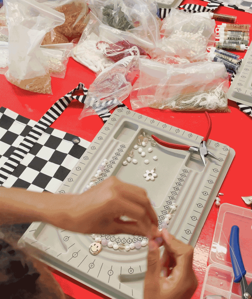 To celebrate the launch of our eyewear collaboration, Ares Kids, kids learned how to bead their own eyeglass chains to keep their sunnies close, with guidance from our founders.